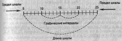 Графические и числовые интервалы бывают равными и неравными. Если на всем протяжении шкалы равным графическим интервалам соответствуют равные числовые, такая шкала называется равномерной. Когда же равным числовым интервалам соответствуют неравные графические интервалы и наоборот, шкала называется неравномерной.