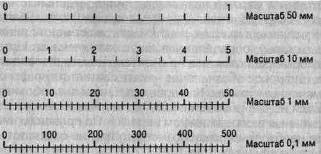 Масштабной шкалой называется линия, отдельные точки которой могут быть прочитаны как определенные числа. Шкала имеет большое значение в графике и включает три элемента: линию (или носитель шкалы), определенное число помеченных черточками точек, которые расположены на носителе шкалы в определенном порядке, цифровое обозначение чисел, соответствующих отдельным помеченным точкам. Как правило, цифровым обозначением снабжаются не все помеченные точки, а лишь некоторые из них, расположенные в определенном порядке. По правилам числовое значение необходимо помещать строго против соответствующих точек, а не между ними (рис. 2).