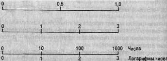 Необходимо найти логарифмы исходных чисел, начертить ординату и разделить ее на несколько равных частей. Затем нанести на ординату (или равную ей параллельную линию) отрезки, пропорциональные абсолютным приростам этих логарифмов. Далее записать соответствующие логарифмы чисел и их антилогарифмы, например (0,000; 0,3010; 0,4771; 0,6021;...; 1,000, что дает 1, 2, 3, 4,..., 10). Полученные антилогарифмы окончательно дают вид искомой шкалы на ординате.