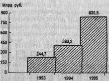 Шкала, определяющая масштаб столбиков по высоте, расположена по вертикальной оси. Величина каждого столбика по вертикали соответствует размеру изображаемого на графике статистического показателя. Таким образом, у всех столбиков, составляющих диаграмму, переменной величиной является только одно измерение. Покажем построение столбиковой диаграммы по данным табл.5.1, характеризующим вклады граждан в учреждения Сбербанка в 1995 г. (рис. 1).