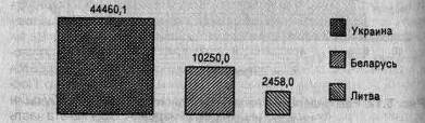 | Украина Беларусь Литва | 44460,1 10 250,0 2 458,0 |