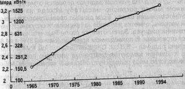 Рис. 15. Динамика производства электроэнергии в регионе за 1965-1994 гг.