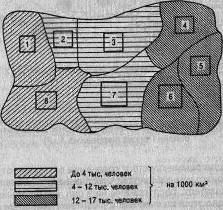 Рис. 18. Картограмма плотности населения восьми районов области.
