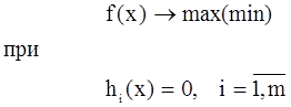 В общем виде математическая постановка экстремальной задачи состоит в определении наибольшего или наименьшего значения целевой функции f(x1, х2,.........., xn) при условиях gi(x1, х2,.........., xn) ≤ bi, где f и gi — заданные функции, a bi — некоторые действительные числа.