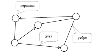 Рис.1.1. Основні елементи графу (вершина, ребро, дуга)