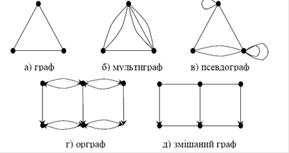 Сполучення цих елементів визначає поняття: неорієнтований граф, орієнтований граф та змішаний граф [6].