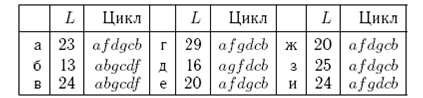 Результати розрахунків довжини «гамільтонових циклів» в задачі «комівояжера» (рис.3.6) наведені в табл.3.2