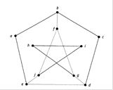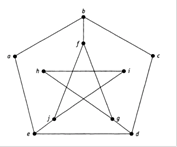 Припустимо, що в зв’язному графізнайдеться гамільтонов цикл. Кожна вершина v включается в гамільтонів цикл С виборомдвох інцидентних з нею ребер, а значить, степінь кожної вершинив гамільтоновому циклі (післявида-лення зайвих ребер)дорівнює2. Степень вершин даного графа — 2 чи 3. Вер-шини степеня 2входять в цикл разом зобома інцидентними з ними ребрами. Отже,ребра аb, ае, cd, cb, hi, hg и ij утім або іншому порядкувходять в гаміль-тонов цикл С ( див. рис. 3.8).