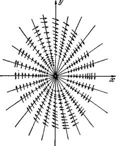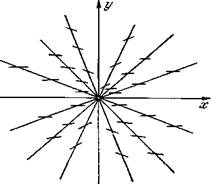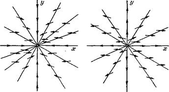 Направление на траекториях может быть установлено, если, например, в первом уравнении (62) положить х = 0, у > 0. Мы получаем