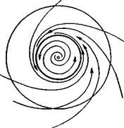 Это можно выразить, сказав, что при убывании tточка на такой траектории уходит на бесконечность в конечное время. Таким образом, траектории, лежащие вне предельного цикла, не являются целыми. Напротив, все траектории, лежащие внутри предельного цикла, очевидно, являются целыми, т. е. tна них меняется от