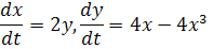 Системы вида (I) являются частным случаем систем двух дифференциальных уравнений с двумя неизвестными функциями: независимое переменное tв их правые части явно не входит. Системы дифференциальных уравнений, правые части которых не содержат явно независимое переменное, называются автономными. Автономные системы дифференциальных уравнений называются также динамическими системами.