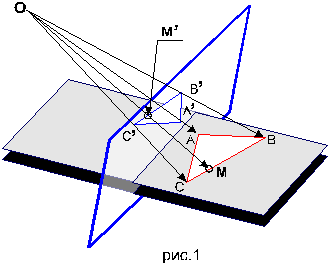 Пусть F- произвольная фигура в некоторой плоскости a , b - какая - либо другая плоскость, т.О- произвольная точка пространства, не принадлежащая ни одной плоскости(a и b). Точка, отсоединенная с любой точкой М фигуры F, определяет прямую (ОМ), пересекающую плоскость b в некоторой точке М/