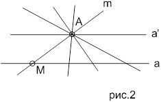 Пусть А - произвольная точка пространства и a - прямая, не проходящая через точку А . Проведем плоскость a через точку А и прямую а . Рассмотрим всевозможные прямые, проходящие через точку А и лежащие в плоскости a (рис.2).