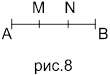 Это свойство позволяет упорядочивать точки на прямой. Так если дан отрезок АВ на проективной прямой, то множество его внутренних точек можно упорядочить так: точка M предшествует точке N, если пара A, N разделяет пару M, B (рис.8).
