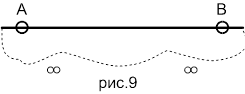 Возьмём на введённой проективной прямой a три точки из которых две помечены числами 0 и 1, а третья значком бесконечности. Точку бесконечности считаем бесконечно удалённой точкой прямой, точки 0 и 1- конечными, а прямую a - разрезанной в т. бесконечность.
