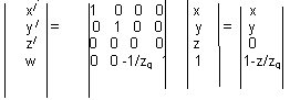 Представим перспективную проекцию объекта как проективное преобразование с центром проекции на оси z (на расстоянии zq от начала координат). Пусть плоскостью проекции является координатная плоскость XOY