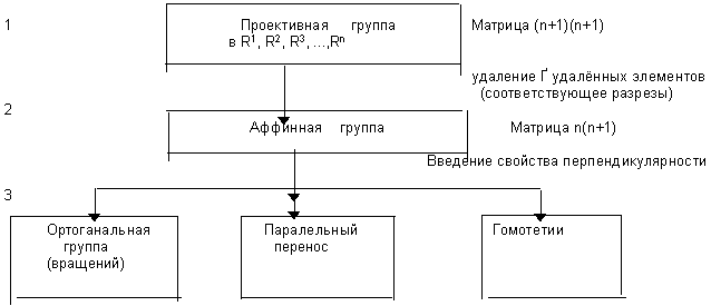 Прежде чем рассмотреть матрицы проективных преобразований, соответствующих конкретным их типам, вспомним иерархию геометрических преобразований.
