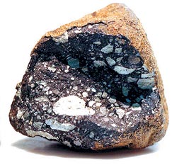 Каменный метеорит ALH 81005, прилетевший с Луны. Найден у холмов Аллан-Хиллс в Антарктиде. Размер — около 3 см Подавляющее большинство из более чем 25 тысяч найденных на сегодня метеоритов попали на Землю из пояса астероидов между Марсом и Юпитером. Метеориты принято считать осколками астероидов, но можно рассматривать их и как крошечные самостоятельные астероиды. А астероиды могут считаться потенциальными гигантскими метеоритами. Орбиты некоторых из них вытянуты в сторону Солнца настолько сильно, что пересекаются с орбитой Земли. В конце концов происходит сближение, огромная планета притягивает к себе крошечную по сравнению с ней каменную или железную глыбу, и на поверхности Земли оказывается метеорит — частица внеземного вещества.