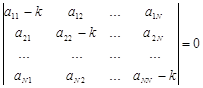 Із цього рівняння ступеня n визначається значення k, при яких система має нетривіальні рішення. Рівняння (4) називається характеристичним.