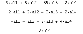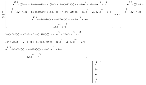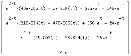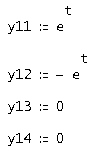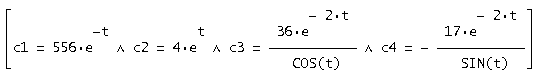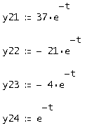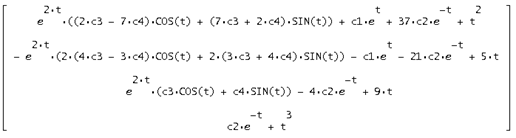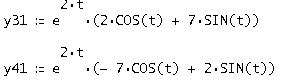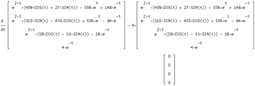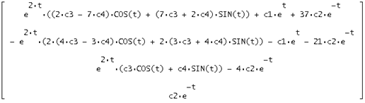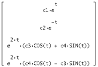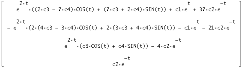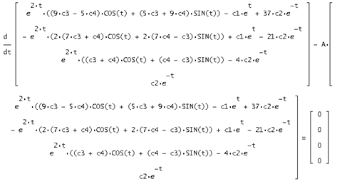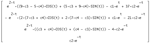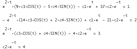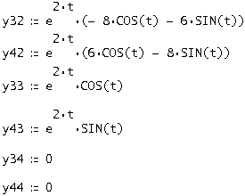 У вектор рішень y (t) підставляємо задані умови й вирішуємо отриману систему відносно c1, c2, c3, c4: