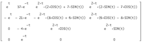 4. Побудувати загальне рішення матричним методом. Досліджувати залежність Жорданової форми матриці А від її власних чисел.
