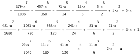 Зрівняємо графік однієї функції вектора точного рішення й однієї функції вектора наближеного рішення з 3-мя, 5-ю й 7-ю членами ряду: