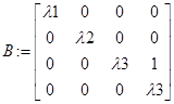 2. Якщо серед корінь характеристичного полінома є, як дійсні різні, так і дійсних кратних корінь, то матриця В має вигляд: