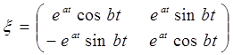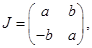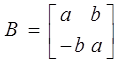 Якщо два власних числа матриці А є комплексними сполученими, то запис жордановой клітки буде виглядати так: