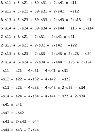 З рівняння A* S = S* В, де S - матриця, одержуємо систему 16-го порядку, з якої знаходимо елементи матриці S. Отримана матриця S буде виглядати в такий спосіб:
