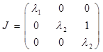 є коріннями кратності 2, то жорданова форма буде виглядати в такий спосіб: