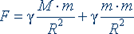 Эта поправка еще более ярко проявляется при m = M . Значение силы F вычисленное по формуле (4) F = γ · 2М 2 / r 2 больше в два раза чем значение силы рассчитанной по формуле (1) F = γ · М 2 / r 2 .