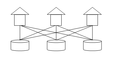 Задача о трех домах и трех колодцах. Имеется три дома и три колодца, каким-то образом расположенные на плоскости. Провести от каждого дома к каждому колодцу тропинку так, чтобы тропинки не пересекались (рис. 2). Эта задача была решена (показано, что решение не существует) Куратовским в 1930 году.