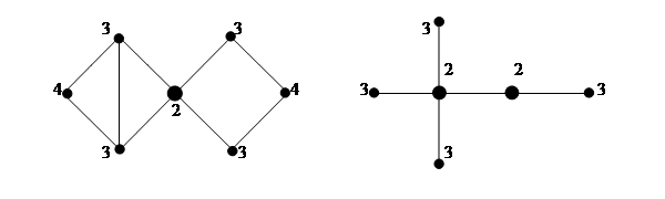 Теорема 3. Во всяком графе с n вершинами, где n больше или равно 2, всегда найдутся две или более вершины с одинаковыми степенями.
