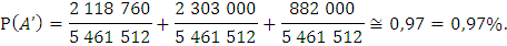 Р(А’) – вероятность события А’, где А’ – событие, когда среди выбранных наудачу изделий для проверки 5 изделий окажутся бракованными не более 2 изделий,
