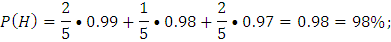 Ответ: Вероятность попадания на сборку небракованной детали равна 98%.