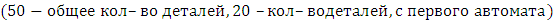 – вероятность взятия детали из первого (второго / третьего) автомата,