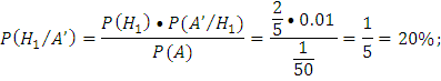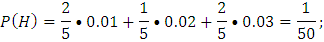 Задача 3. В сборочный цех завода поступают детали с трех автоматов. Первый автомат дает 1% брака, второй – 2%, третий – 3%. С каждого автомата поступило на сборку соответственно 20, 10, 20 деталей. Взятая на сборку деталь оказалась бракованной. Найти вероятность того, что деталь поступила с 1-го автомата.