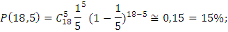 Используя формулу Бернулли, вычислим, какова вероятность того, что рабочему придется ремонтировать 5 станков:
