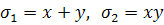 витікає, що добуток xy є симетричним многочленом. Симетричні многочлени x + y і xy є найпростішими. Їх називають елементарними симетричними многочленами від x і y . Для них використовують спеціальні позначення: