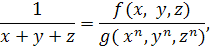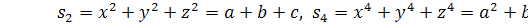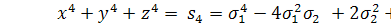 Як же знайти такий многочлен g? Спробуємо використовувати симетричні многочлени. Простими прикладами симетричних многочленів, залежних тільки від (n – x) степеней змінних x, y, z , можуть служити степеневі суми