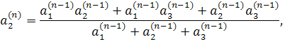 Добуток всіх чисел другого наближення знову рівний N. Потім по числах другого наближення складемо третє наближення Можна довести, що при кожна з величин що складає n-те наближення, прямує до