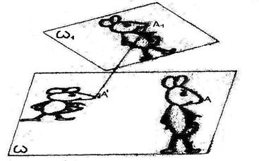 Возьмем два экземпляра плоскости w и один из них переместим в другое положение w1(рис.3). Новое положение какой-либо точки Аєwобозначим А1єw1. Теперь плоскость w1 спроектируем в каком-нибудь положении на w, проекцию точки А1 обозначим А'.