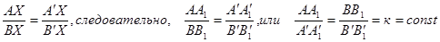 2) Отношение, в котором точка делит отрезок, сохраняется, т.е.