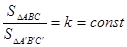 Отношение площадей двух соответственных треугольников постоянно и равно к.