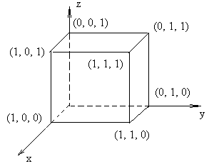В рассмотренной задаче все объёмы перевозок со складов на заводы удалось выразить через две переменные х, у . Это позволило дать геометрическую интерпретацию получившейся системы неравенств на координатной плоскости. Допустим, однако, что при тех же двух складах число заводов равно четырём с потребностью в сырье соответственно 8, 10, 12 и 15 т. Тогда нужно будет ввести три переменные x , y , z , обозначающие количество сырья, вывозимого со склада С1 на первые три завода. Если задать расстояния со складов до заводов, то можно будет составить выражение для общего числа тонно-километров. Можно написать и неравенства, выражающие неотрицательность количества сырья, вывозимого со складов на заводы. Теперь эти неравенства будут зависеть от трёх переменных x , y , z . Каждое из этих неравенств задаёт полупространство, а система всех неравенств определяет пересечение полупространств, т. е. выпуклый многогранник в трёхмерном пространстве.