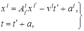 Будем характеризовать положение материальной точки в пространстве в данный момент времени пространственными координатами х i ( i = 1, 2, 3) и временной координатой t . В классической механике Галилея-Ньютона переход от исходной системы координат х i , t к другой системе, движущейся относительно неё прямолинейно и равномерно определяется формулами