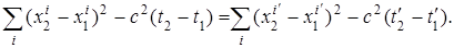 Для того чтобы выполнялось условие постоянства скорости света для всех систем координат, движущихся равномерно и прямолинейно друг относительно друга, достаточно, чтобы для всех таких систем прямоугольных координат выполнялось соотношение
