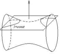 Наиболее грубое приближение к картине мирового пространства-времени в целом мы получим, если предположим, что материя распределена в пространстве–времени совершенно равномерно и, следовательно, пространство-время представляет собой псевдориманово 4-пространство индекса 3 постоянной кривизны. Если мы представим себе такое пространство в виде сферы вещественного или мнимого радиуса в псевдоевклидовом 5-пространстве соответственно индекса 4 или 3, а поверхности t =const также в порядке грубого приближения представим себе сечениями этой сферы параллельными плоскостями, то с течением времени «пространственное сечение» мира уменьшается или расширяется в зависимости от положения секущей плоскости. В первом случае кривизна «пространственного сечения» - постоянная положительная, во втором случае – постоянная отрицательная.
