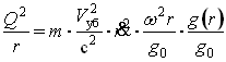 , и виртуальной частицы m, “движущейся” радиально в масштабе r во вращающемся поле тяготения планковской массы.