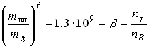 b = 1.3× 109 – множитель барионной асимметрии, т.к. процесс происходит до аннигиляции барионов,